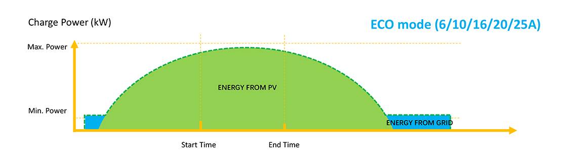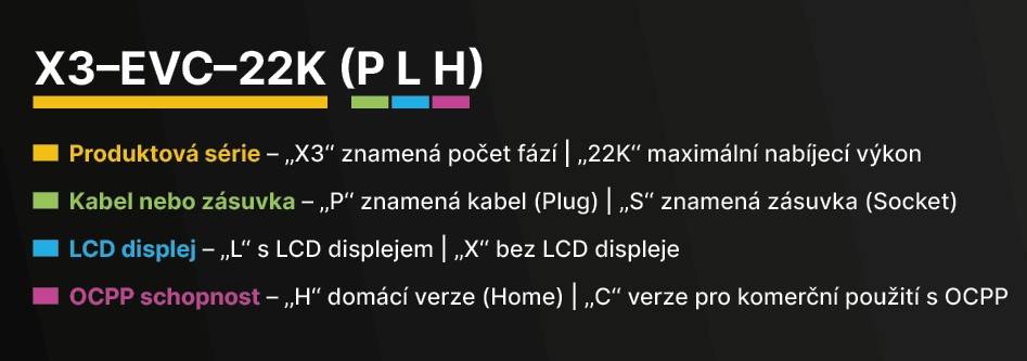 Je vybavena LCD displejem, podporuje PLC komunikaci, WiFi, RFID (včetně 2 karet), CT senzory pro dynamické řízení výkonu a inteligentní režimy nabíjení (Green, Eco, Fast, Timer, Smart). Ideální pro maximalizaci vlastní solární energie a omezení odběru ze sítě.