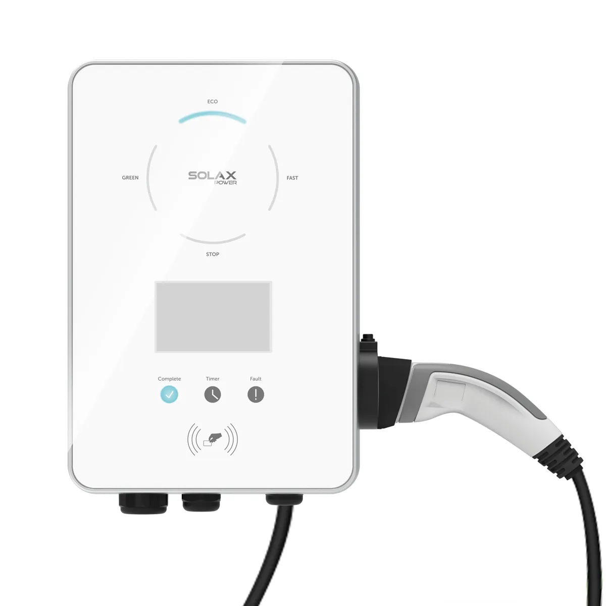 Inteligentní třífázová nástěnná nabíječka pro elektromobily s výkonem až 22 kW (400 V / 32 A). Obsahuje 6,5 m kabel typu 2 s konektorem, vestavěnou ochranu 30 mA AC + 6 mA DC, integrovanou ochranu PEN a kompatibilitu se střídači Solax.